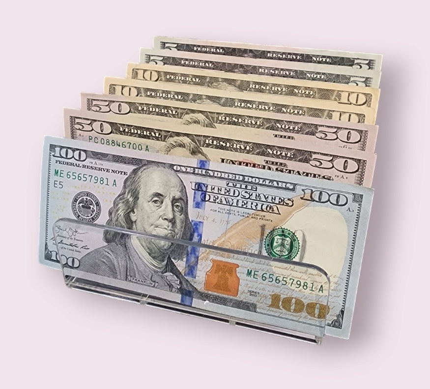 A tray used to separate cash denominations and organize your bills during cash stuffing.